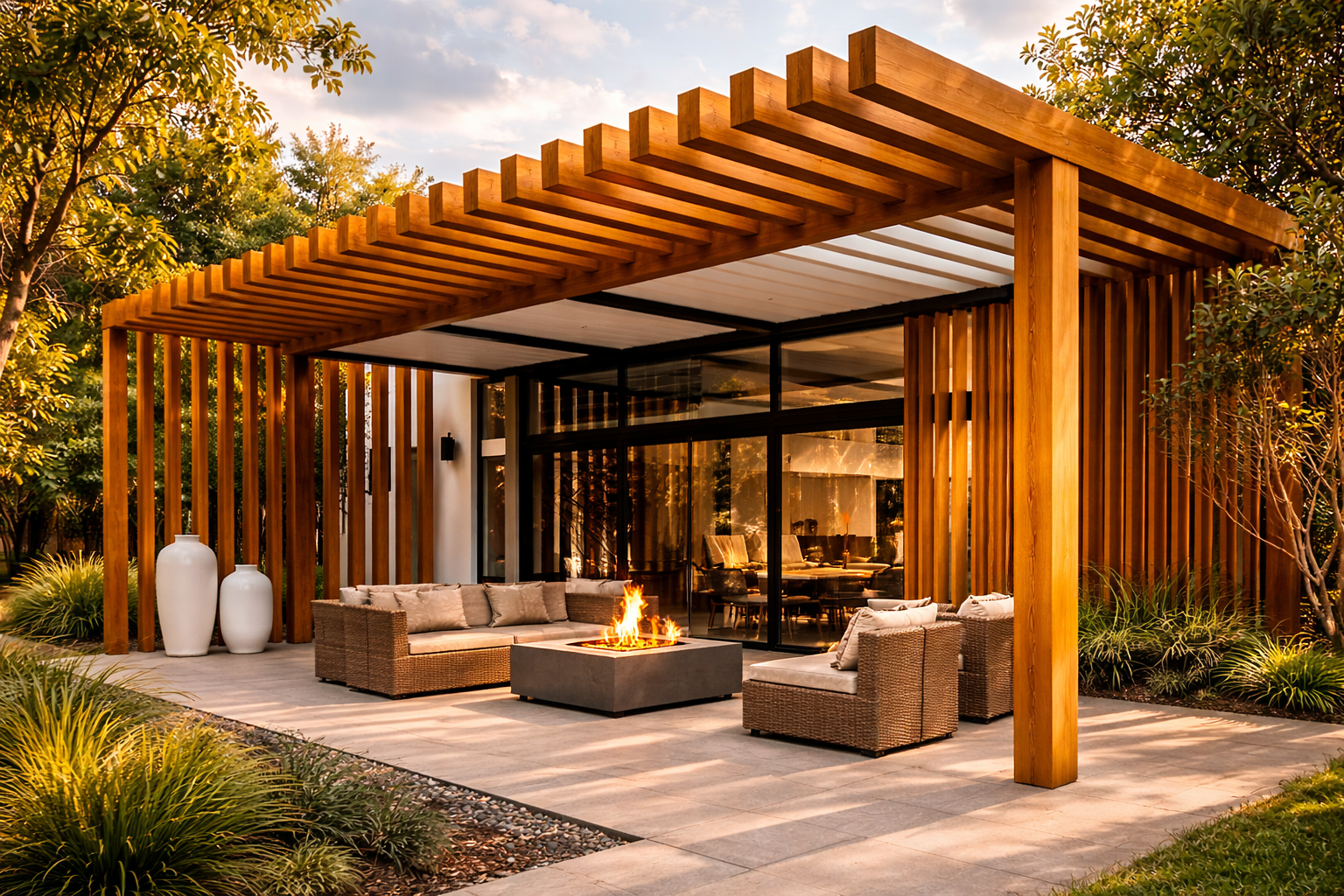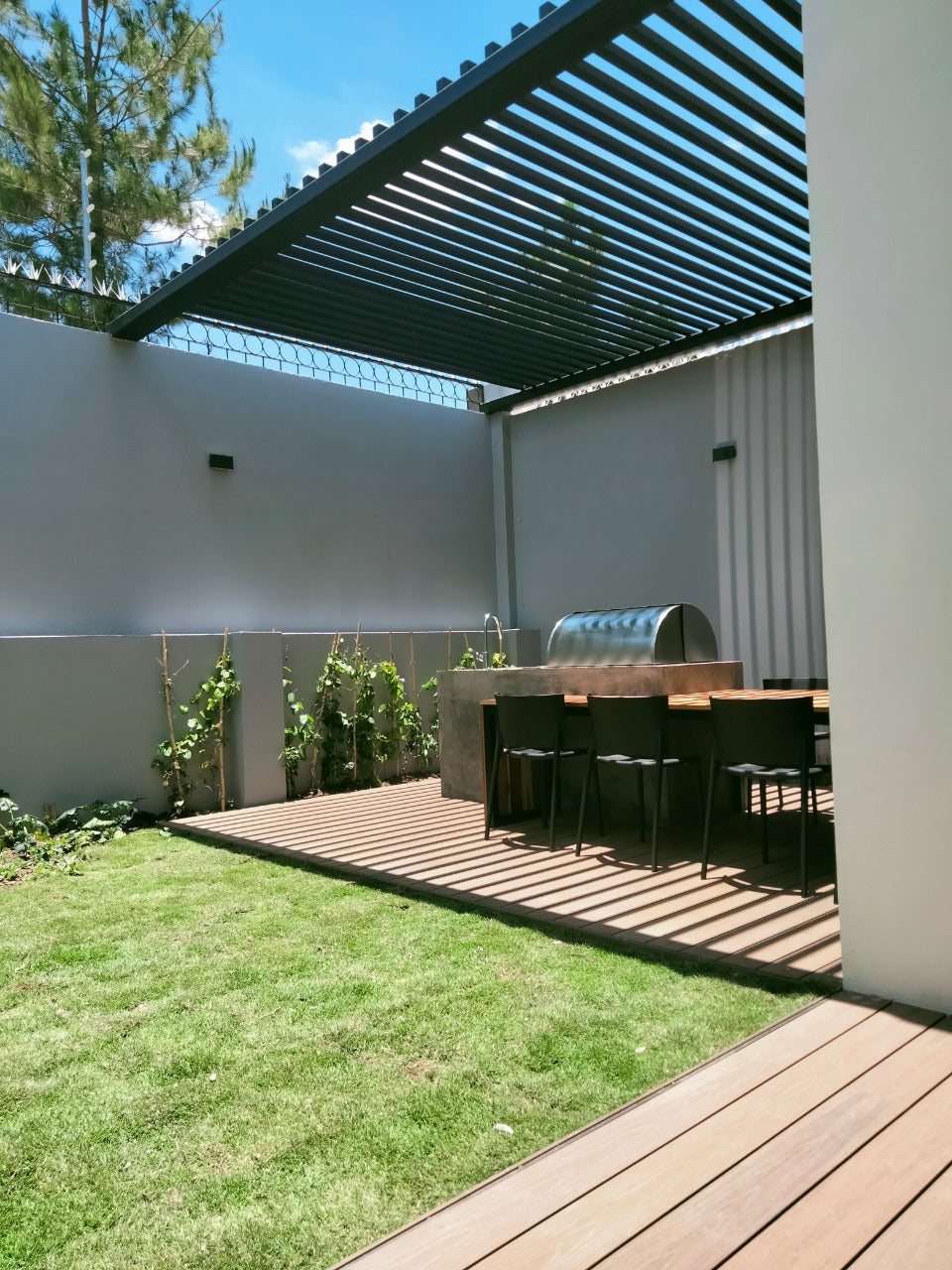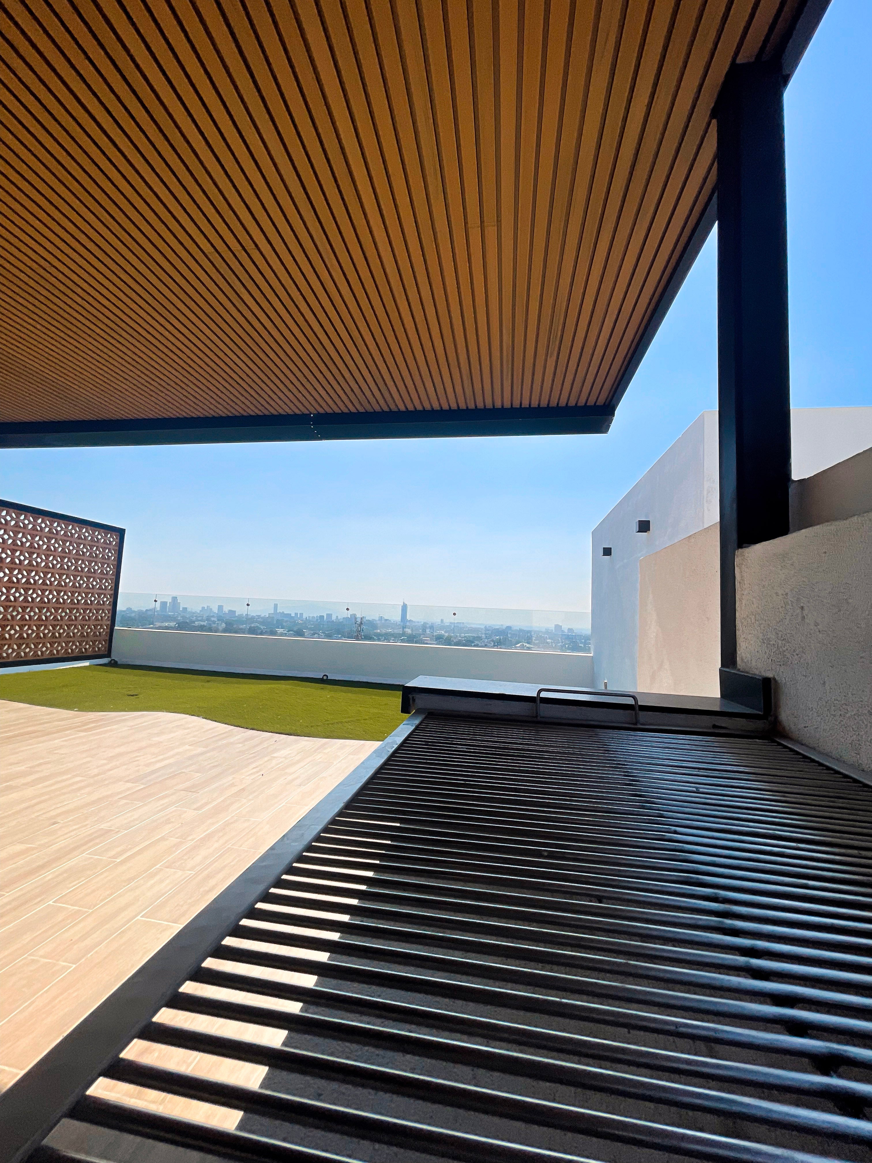 Además, su diseño doble vista permite elegir entre color miel y color roble, brindando versatilidad estética para cualquier estilo de ambiente exterior.