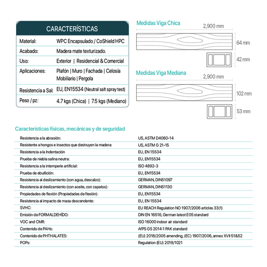 Viga WPC Mediana: 5.3 cm (alto) × 10 cm (ancho) × 290 cm (largo)